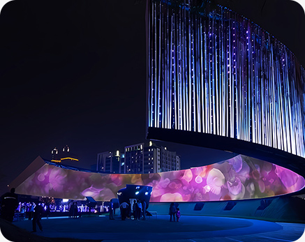 數(shù)字信息時代,華竣數(shù)創(chuàng)運用燈光秀、超清視頻、特種影院等新媒體視覺藝術的聲光影電炫酷效果調(diào)動觀者的所有感官全身心參與展廳視聽體驗,享受沉浸式心流狀態(tài)。