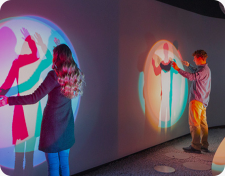 華竣將國際先進的多媒體創(chuàng)意互動科技與硬件設備應用于展館中如AR/VR/MR、機械藝術裝置、結(jié)構(gòu)投影等等,